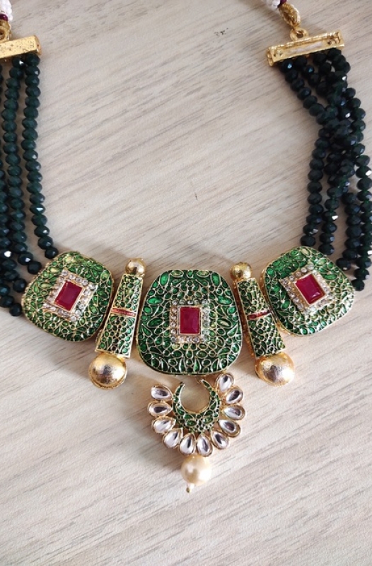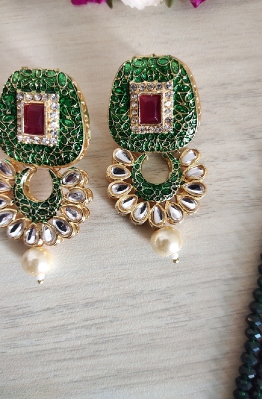 Necklace Set with Earrings (Meenakari Work - Green)