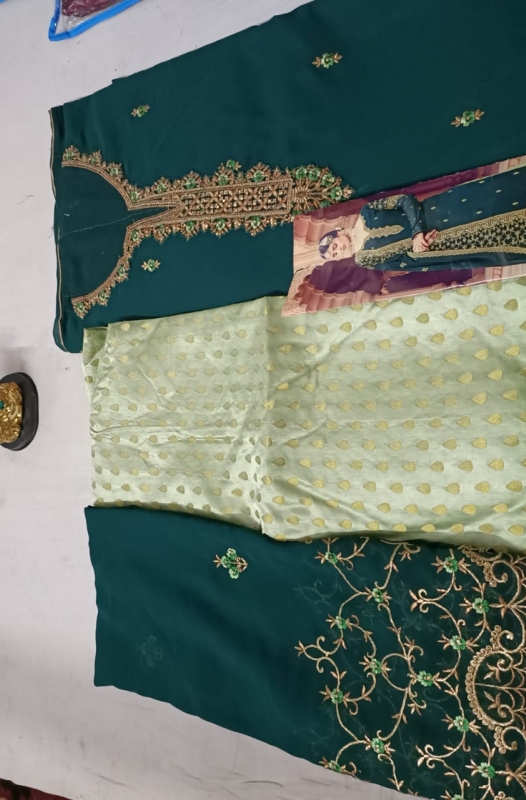 Top Georgette embroidered semi stitched upto 48" colour Green