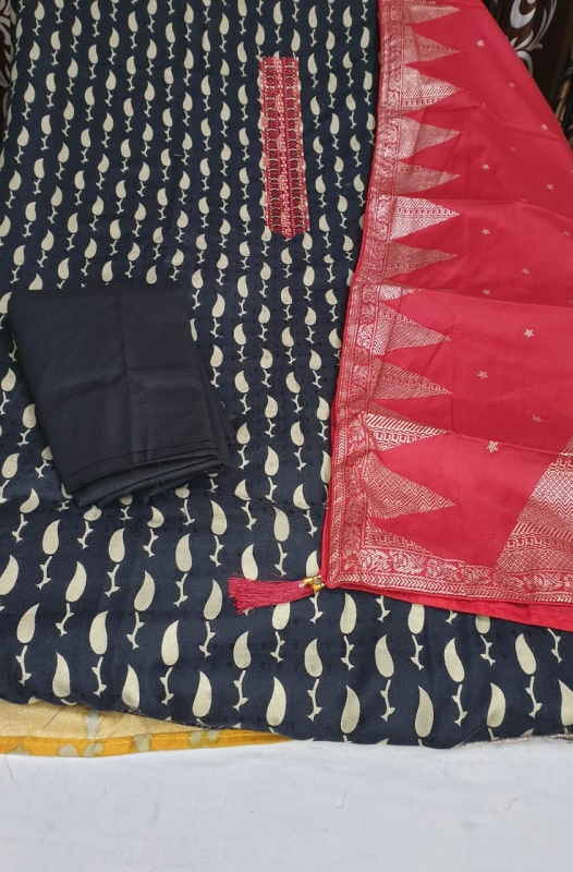Dupatta Pure pashmina shawl weaving style gold foil printed and four side lace and tassels