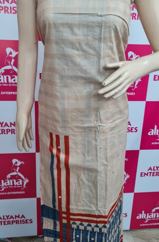Unstitched cotton kurtis with foil mirror work and kantha work 2.5 MTRS