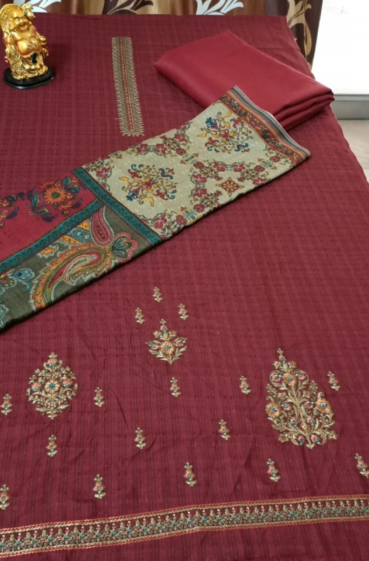 Top Pure pashmina dobby digital print with neck and daman embroidery