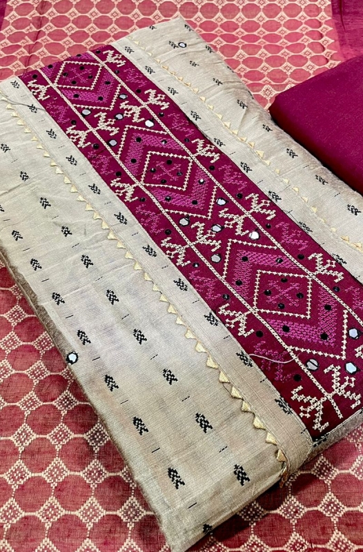 Shirt - handloom silk with beautiful neck work and laceLength 43"width 37"
