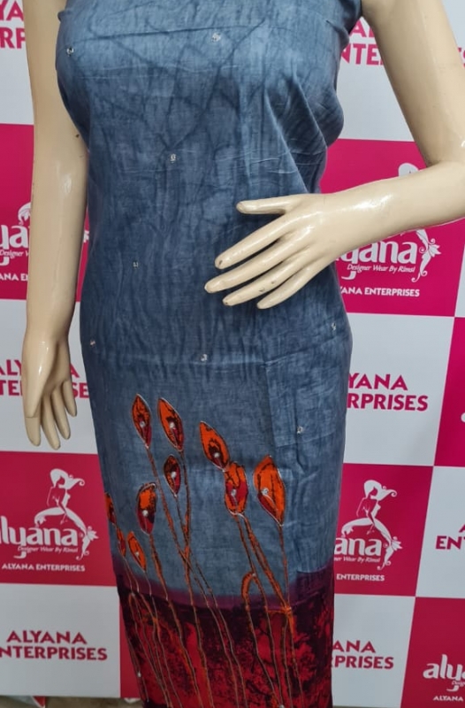 Unstitched cotton kurtis with foil mirror work and kantha work 2.5 MTRS