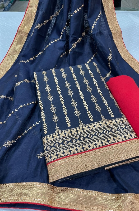 width 41"Dupatta - chanderi with embroidery and four side lace