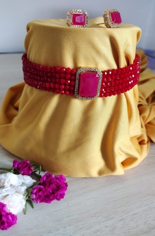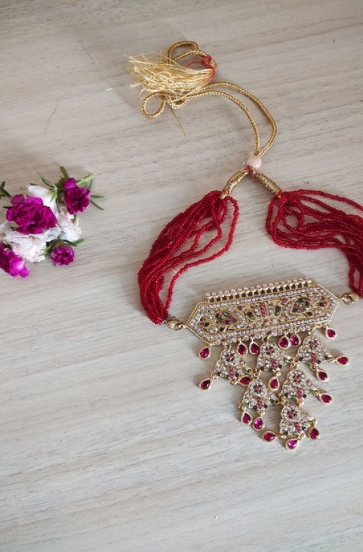 AE MOTI MALA 7939 (RED BEADS WITH PINK STONE)