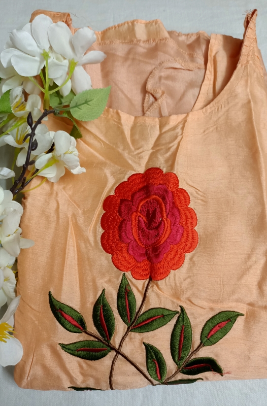 Fabric silk with front flower embroidery